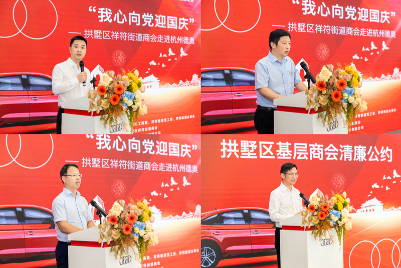 正式活動在莫總的歡迎致辭后拉開帷幕。隨后,拱墅區工商聯王喬松副主席、拱墅區祥符街道辦事處王軍副主任發表致辭,拱墅區祥符街道商會胡思新會長宣讀了拱墅區基層商會清廉公約。