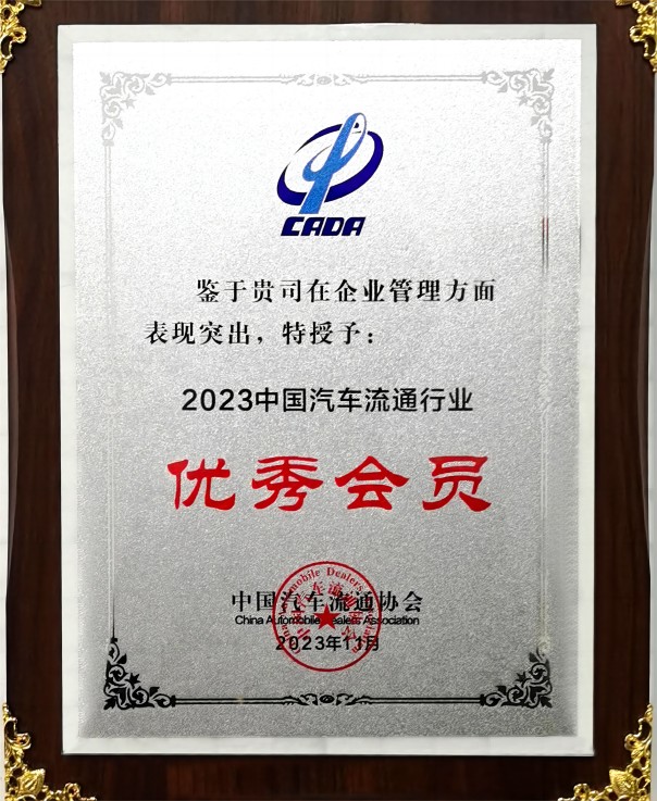 紹興金恒德榮獲2023年中國汽車流通行業企業管理“優秀會員”稱號
