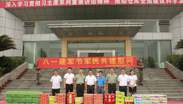 “八一”建軍節之際,在這個特別的節日,雙流縣臨空管委會副主任青長國等領導,四川金恒德總經理陳維秀、副總經理段南、黨委書記周斌及公司員工先后前往雙流縣消防隊、78649部隊對一線廣大官兵送上了炎熱天氣解暑的飲料、水果和節日的問候和祝福。
